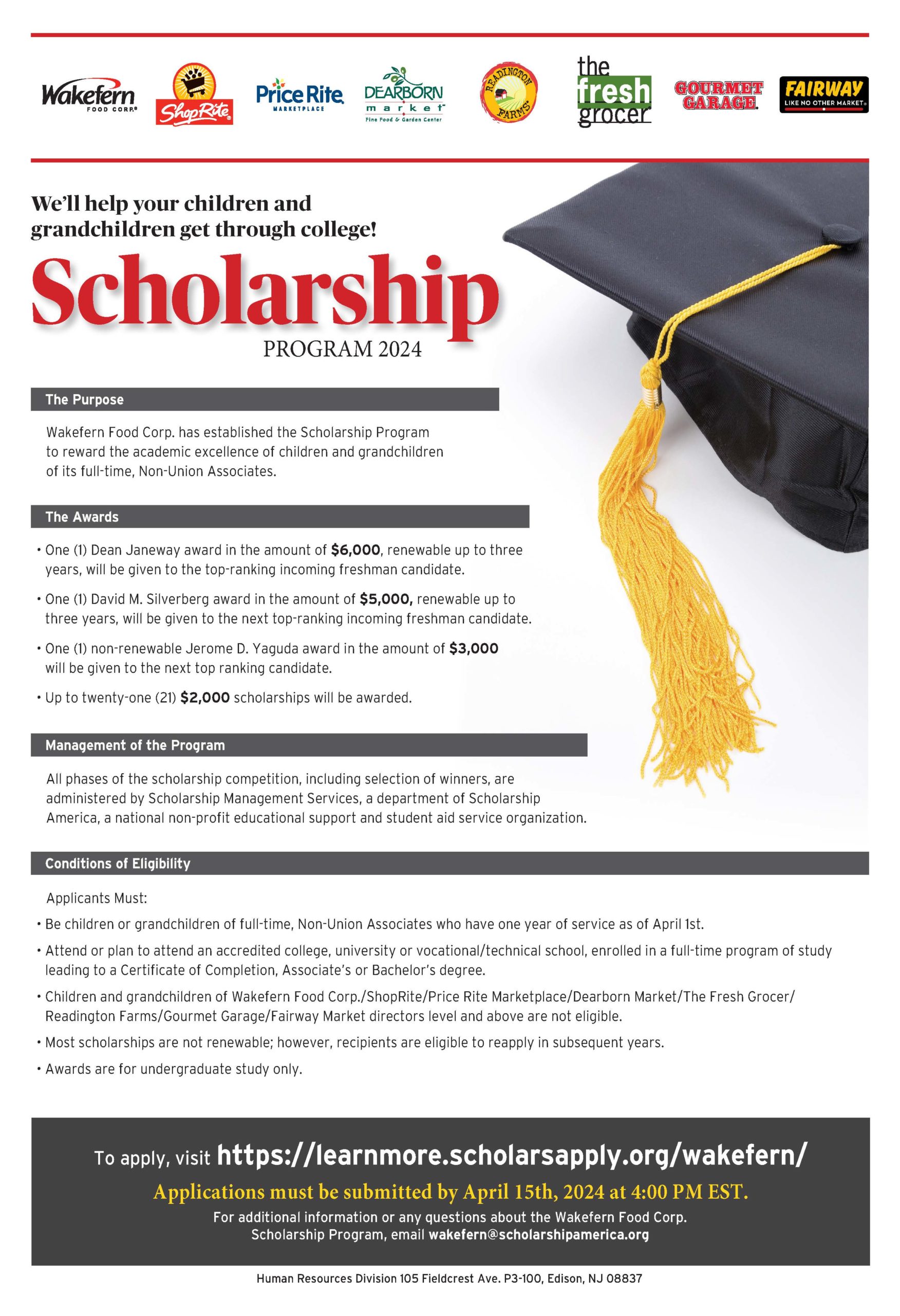 Scholarship programs are available for children and grandchildren of associates of ShopRite Supermarkets.